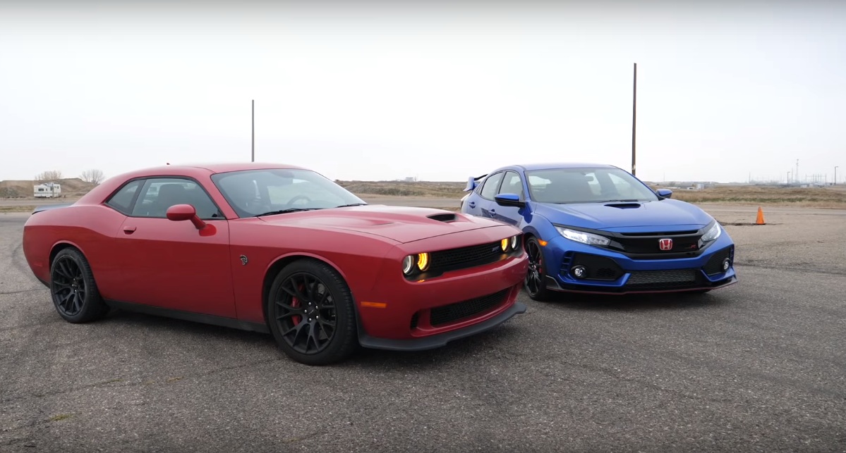 Δαυΐδ εναντίον Γολιάθ! Κάπου στην Αμερική θεώρησαν σωστό να βάλουν ένα Honda Civic Type R να κοντράρει ένα Dodge Hellcat σε drag race. Τελικά όμως αναθεώρησαν και είπαν να τα μετρήσουν και σε ένα γύρο στην πίστα μήπως και μειώσουν την χαοτική διαφορά στην ιπποδύναμη με αυτόν τον τρόπο.
